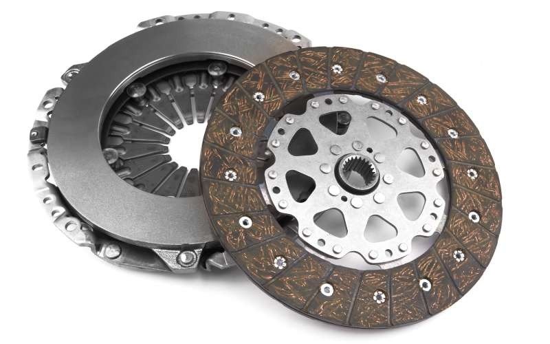The clutch system connects and disconnects the engine from the transmission.